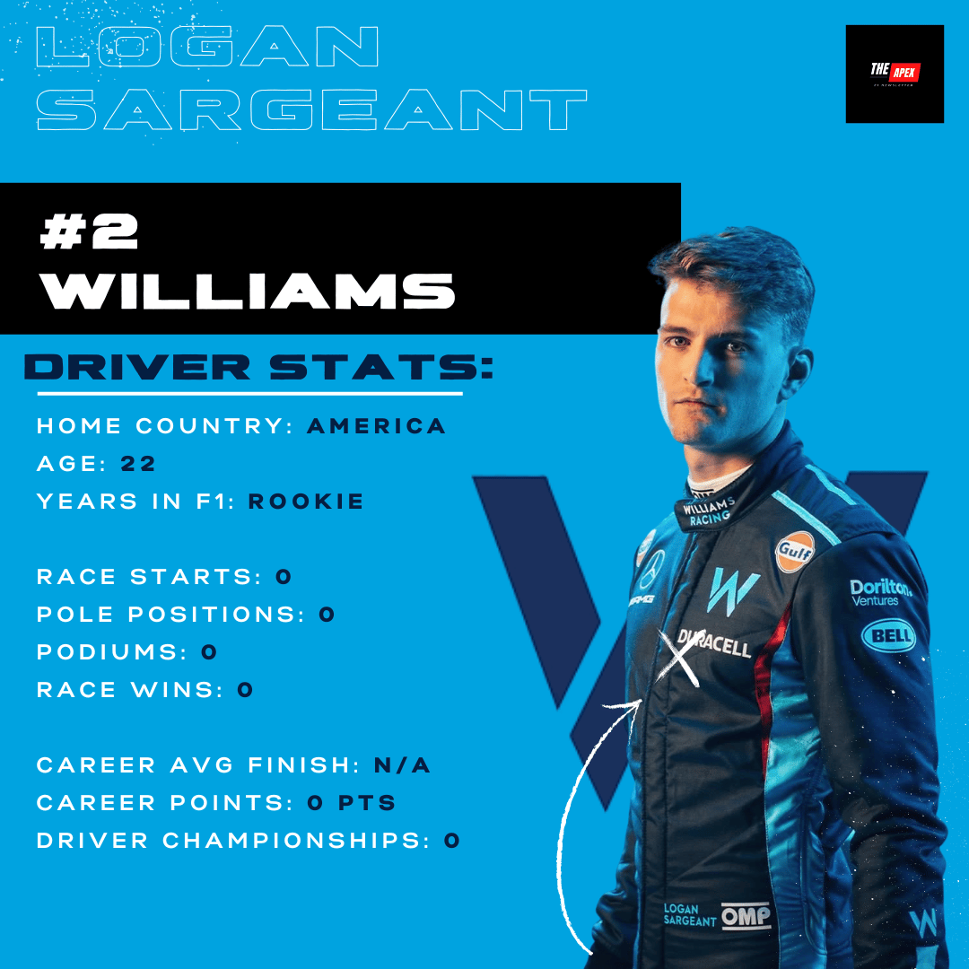 Alex Albon is the leader of a team that finished last in the standings last season. Safe to say that Williams will not be competing for wins this season. Albon will be looking to expand on his point scoring opportunities. Williams looks to have improved their car in testing but it will be hard to climb up into the midfield. Albon, the former Red Bull driver, will have to make the most of every opportunity he gets. There may not be that many of them.