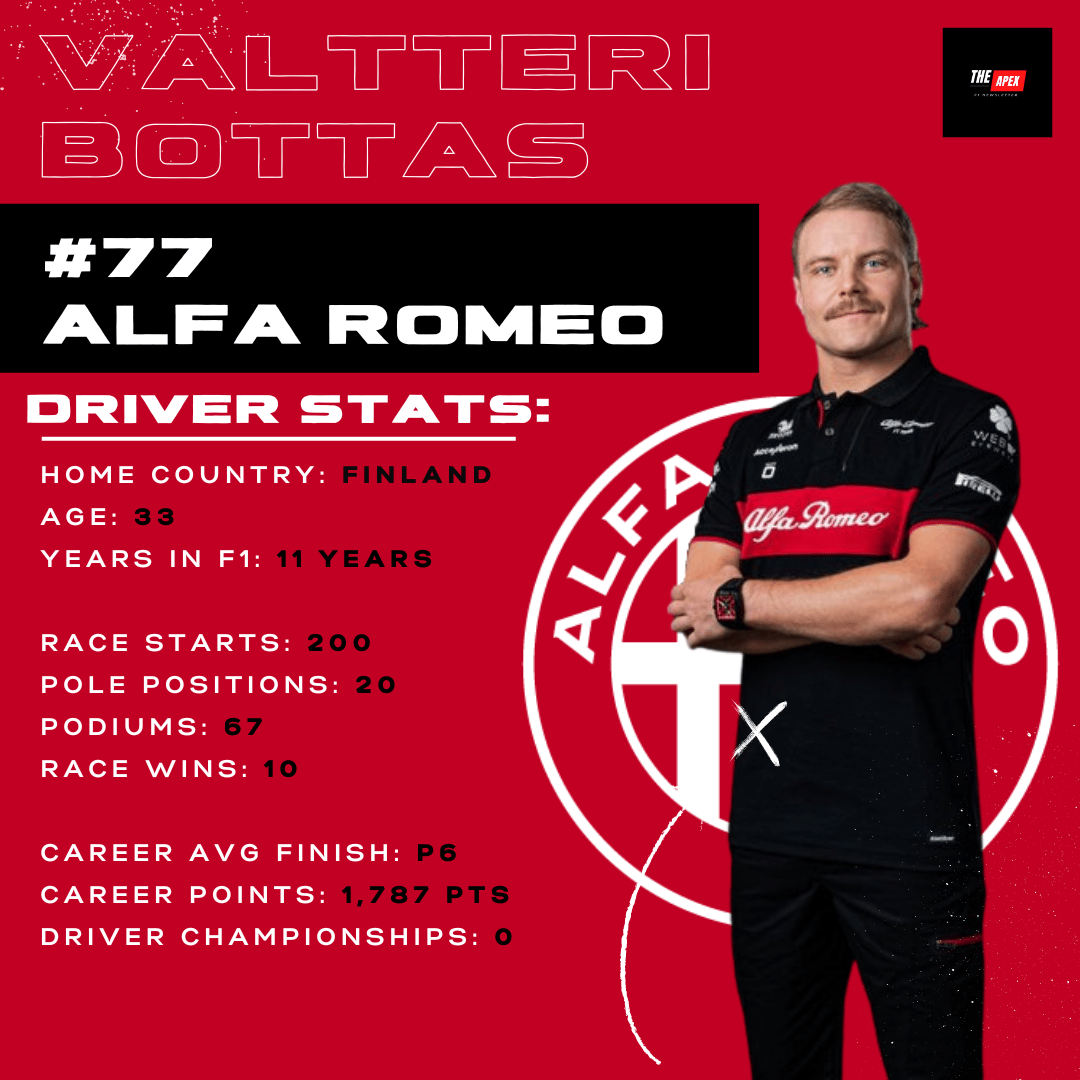 Valtteri Bottas is a multiple race winner after spending 5 seasons with Mercedes. He was never able to beat Lewis Hamilton during his time there. Its hard for us to be convinced he could win a championship at Alfa when he had multiple chances to do so at Mercedes and couldn’t get it done. Albeit his teammate is one of the greatest drivers of all time. In his second year at Alfa Romeo he is clearly the lead guy. Alfa may be competitive in the midfield this year but we don’t see them getting a chance at winning races.